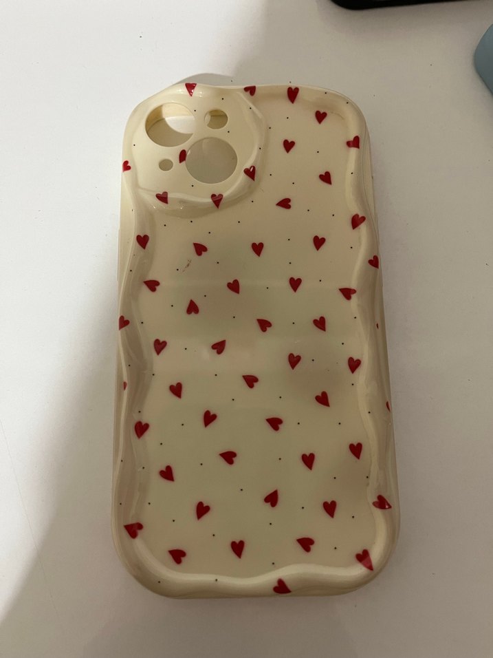 Küçük kırmızı kalp desenli, dantel detaylı beyaz bohem tarzı telefon kılıfı. Zarif ve şık bir görünüm sunar. ❤️