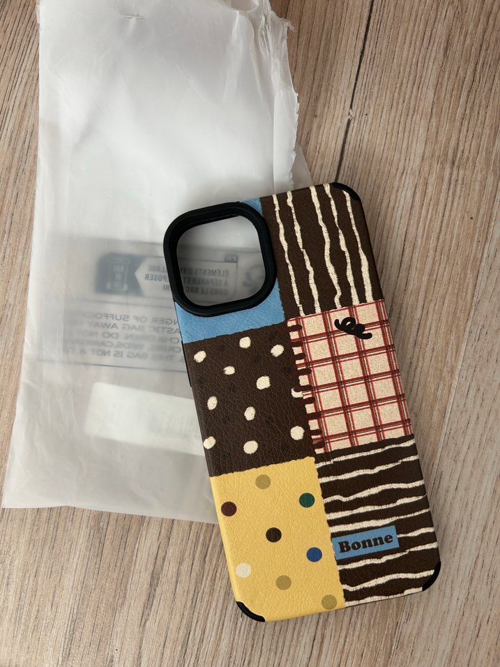Bohem tarzda, koyu tonlarda çok renkli patchwork desenli ve Velcro kapaklı telefon kılıfı. Telefonunuzu güvenle korur ve şıklık katar.