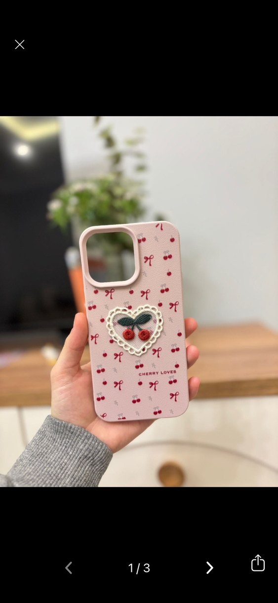 Pinterest model kılıf Boncuk detaylı, kiraz ve küçük fiyonk desenli pastel pembe bohem tarzda telefon kılıfı.