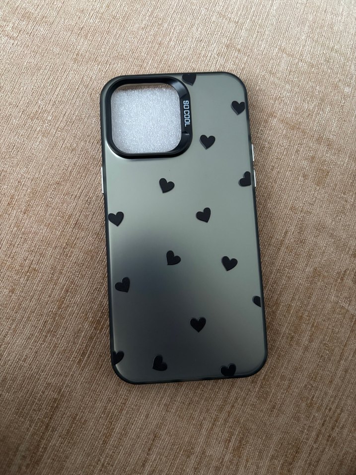 Bu siyah telefon kılıfı parlak yüzeye ve küçük siyah kalp desenlerine sahiptir, goth tarzını yansıtır. Cihazınızı şık şekilde korur.