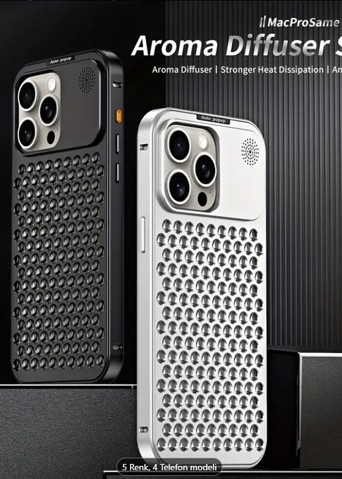 iPhone 15, 15 Pro, Promax Uyumlu Gövde Koruyucu Metal Soğutma Öz