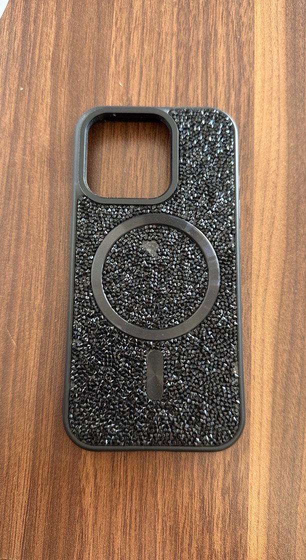 Siyah renkte, boncuklu dokusu ve bohem tarzıyla dikkat çeken telefon kılıfı. Kablosuz şarj uyumlu yuvarlak desen içerir.