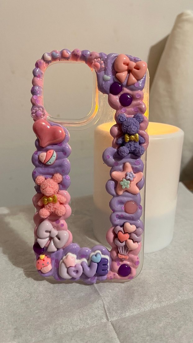 Pastel mor renkte, boncuklu pop kültür figürleriyle süslenmiş eğlenceli telefon kılıfı. Ürünler tamamen el emeğiyle üretilmiştir Kore tarzını yansıtmaktadır  İPhone 16 ile uyumludur