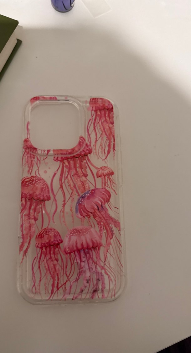 Iphone 16 Pro Pembe Şeffaf Denizanası Desenli Telefon Kılıfı