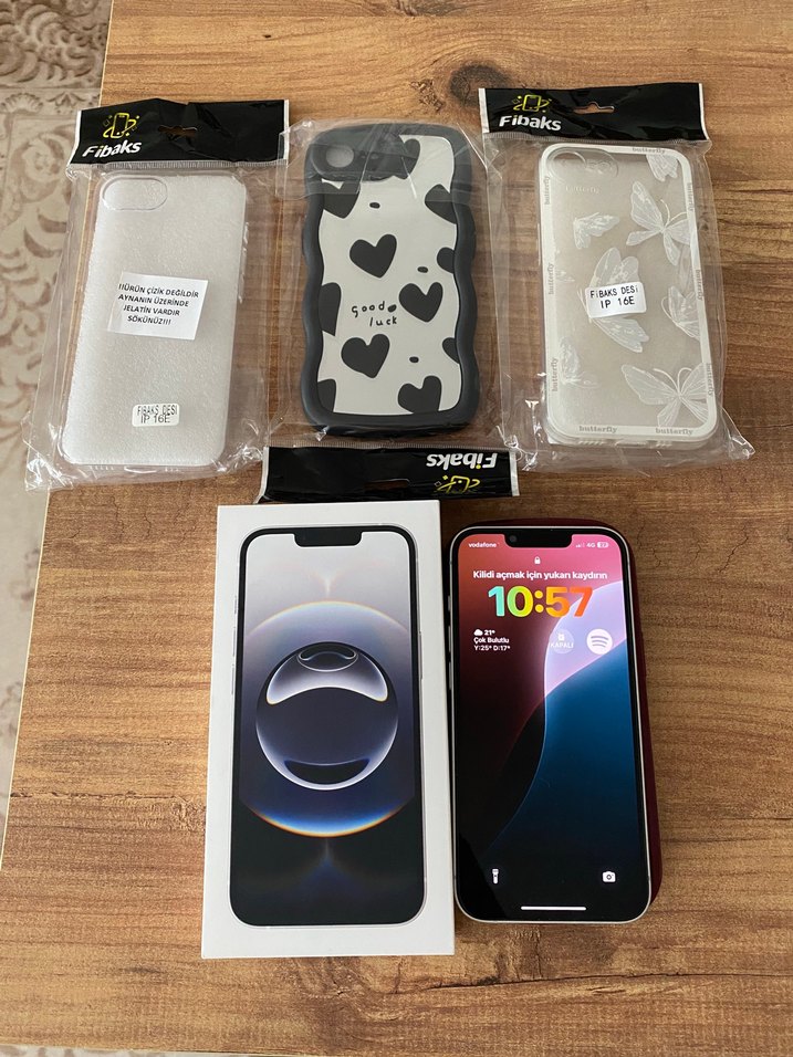Beyaz iphone 16e 128 gb. Daha 1 aylık cihaz. Hiçbir sorunu yoktur. Pil sağlığı %100. Kutu fatura şarj kablosu yanında kılıflarıyla beraber vericem. Mediamarkttan 2 yıllık ücretsiz ekran koruyucu hizmeti vardır. Fiyat:40000tl
