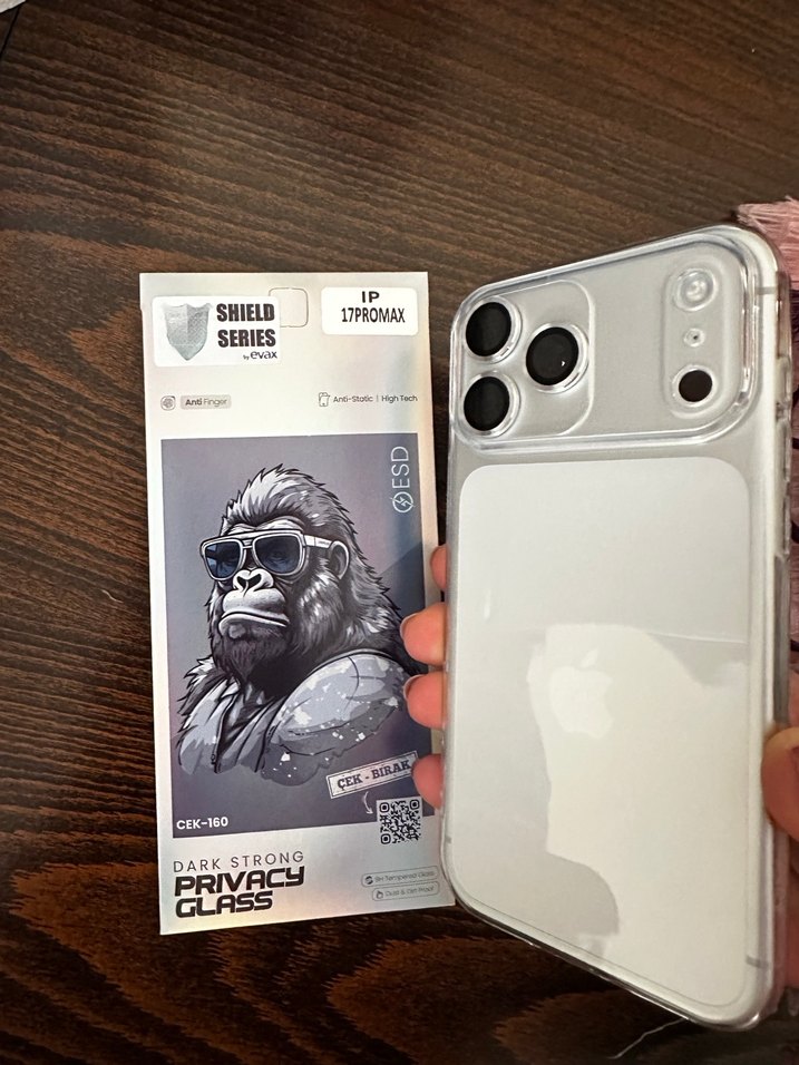 iPhone 17 Pro Max için hayalet ekran koruyucu , karanlık güçlü gizlilik camı ve shield koruma.. mükemmel kalite..