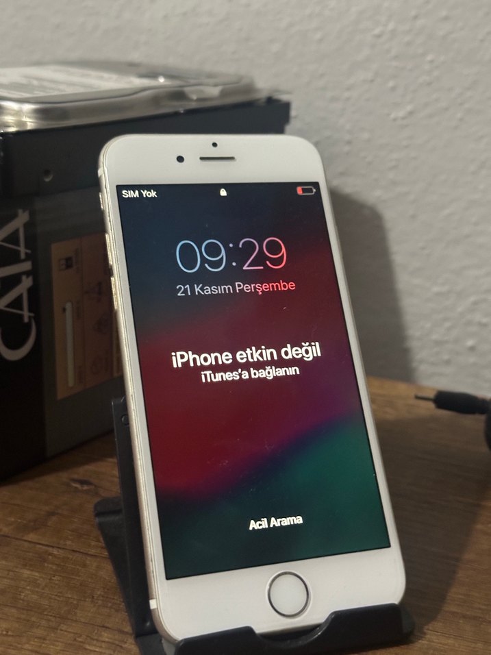 Fotoğraflarda görüldüğü üzere cihaz "iPhone Etkin Değil" modundadır. Çok kez yanlış şifre girildiği için bu uyarıyı vermektedir. iTunes üzerinden yazılım atılması veya Bypass yapılması gerekebilir. • Ekran: Görüntü sağlam, dokunmatiği çalışıyor. Kozmetik olarak temiz durumda. • Kasa: Kasası diri duruyor, büyük darbeleri yok. • İCloud Durumu: Şifresini hatırlamadığım/bilmediğim için hesap kilidi (iCloud) çıkma ihtimali yüksektir. Bu yüzden parçalık veya yedek parça niyetine satılıktır. • Çalışma Durumu: Şarj alıyor, açılıyor fakat ana ekrana girilemiyor.