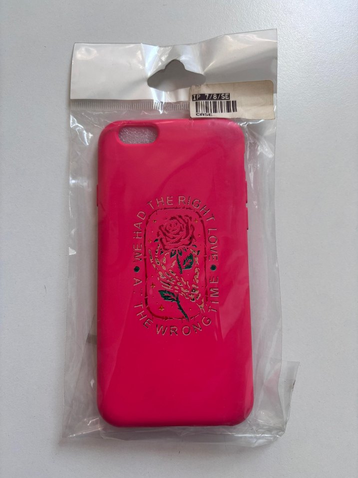 Canlı pembe renkte, karşı kültür tarzında gül desenli telefon kılıfı. Renkli ve kullanışlıdır.