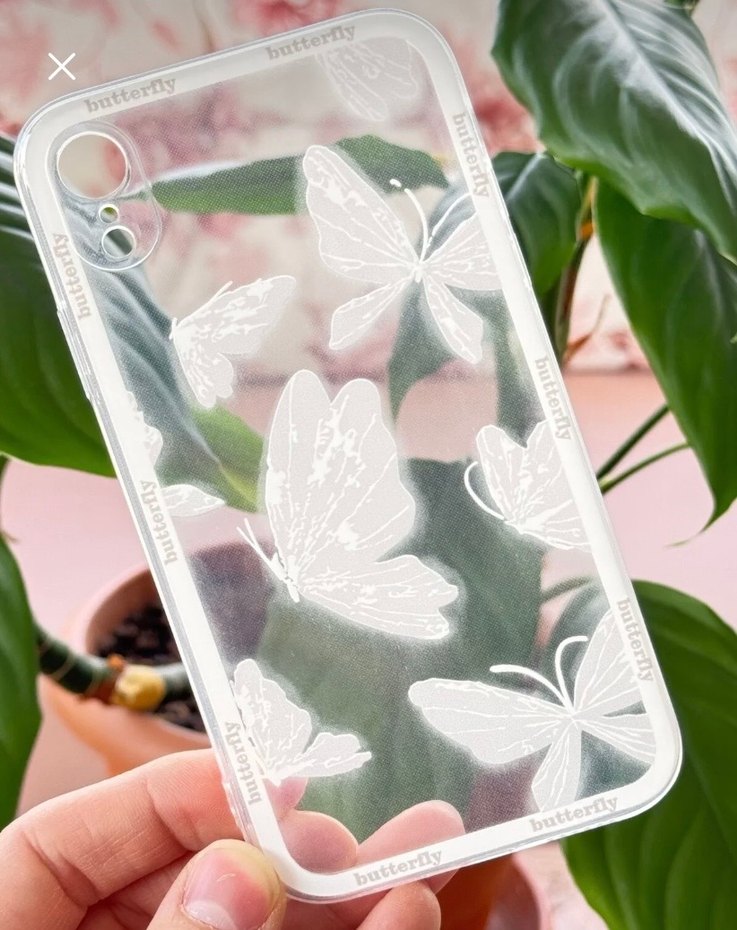 Şeffaf, pastel beyaz kelebek desenli bohem tarzda telefon kılıfı. Telefonunuza zarif bir dokunuş katar.