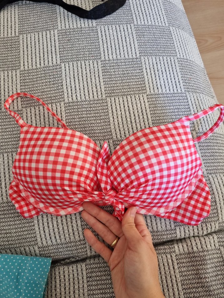 İpli Kırmızı Ekose Bikini Üstü Fiyonk Detaylı