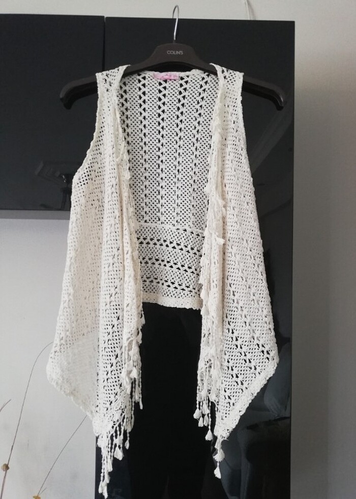Iplikten yapılma otantik yelek, L beden yazıyor 42 bedene de olur. Son fotoda ekli omuz kısımları hafif sökülmesi mevcut ama normal dede iplikli olduğu için açıp bakmadıktan sonra anlaşılmıyor ve yine aynı renk bir iple tamir yapılsa anlaşılmaz bile. Bu durum fiyata yansıtıldı.