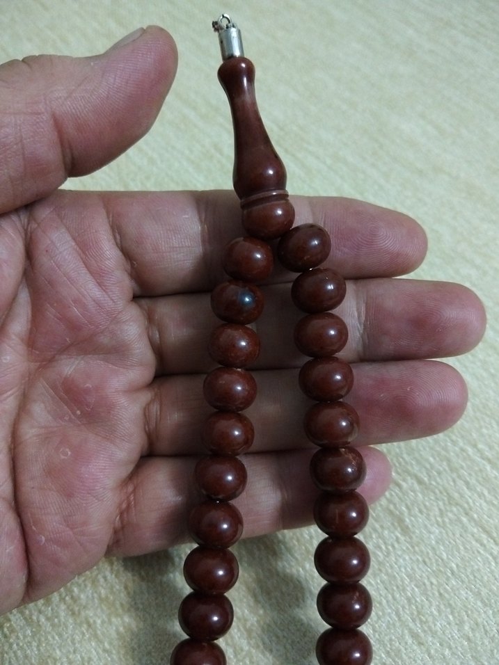 SON FOTODA BİR TANESİNDE BOYA DEĞİŞİMİ VARDIR. Klasik ve minimalist tasarıma sahip koyu kahverengi erkek tesbih, yuvarlak ve pürüzsüz boncuklardan oluşur.