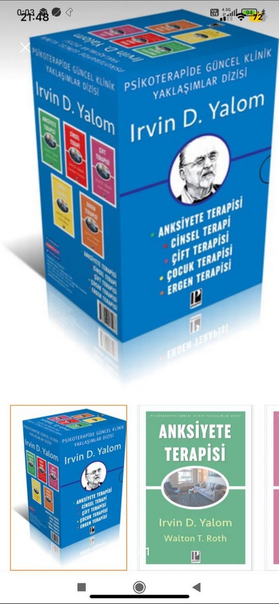 Irvin D. Yalom'un anksiyete, cinsel terapi, çift terapisi, çocuk terapisi ve ergen terapisi konularını içeren terapi kutusu.