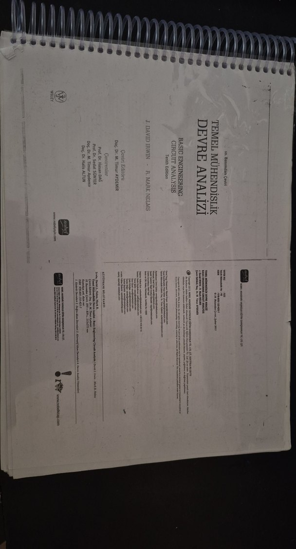 Basic Engineering Circuit Analysis kitabının 10. Baskısından çevirisi. Fotoğraflarda görüldüğü gibi 1 sayfaya 2 sayfa sığacak şeklinde ciltlenmiştir. Özellikle ilk sayfalarda toplam 20 sayfayı geçmeyecek şekilde kurşun kalemle kitap üzeri çözüm yapılmış sayfalar vardır. Kitabın gerisi tertemizdir. Genelde üniversitelerin Devre 1 ve Devre 2 dersleri müfredatı için kullanıma uygundur. Temel kavramlardan 3 fazlı devrelere kadar tüm konuları içerir.