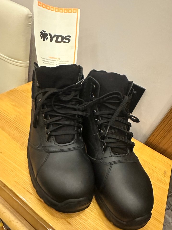 YDS marka 44 numara ortopedik çelik burunlu kaymaz taban yağmur geçirmez iş ayakkabısı botu hiç kullanılmamıştır. Sıfır kutusunda.