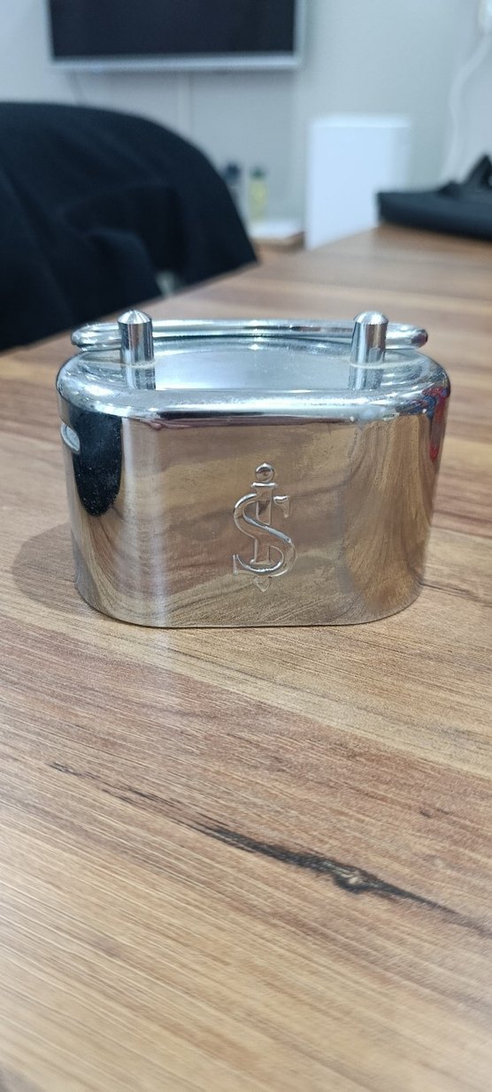 Parlak altın renkli, pürüzsüz yüzeye sahip çatal kaşık tutucu. İki dikey çubuğu ve sağlam tabanı bulunur.