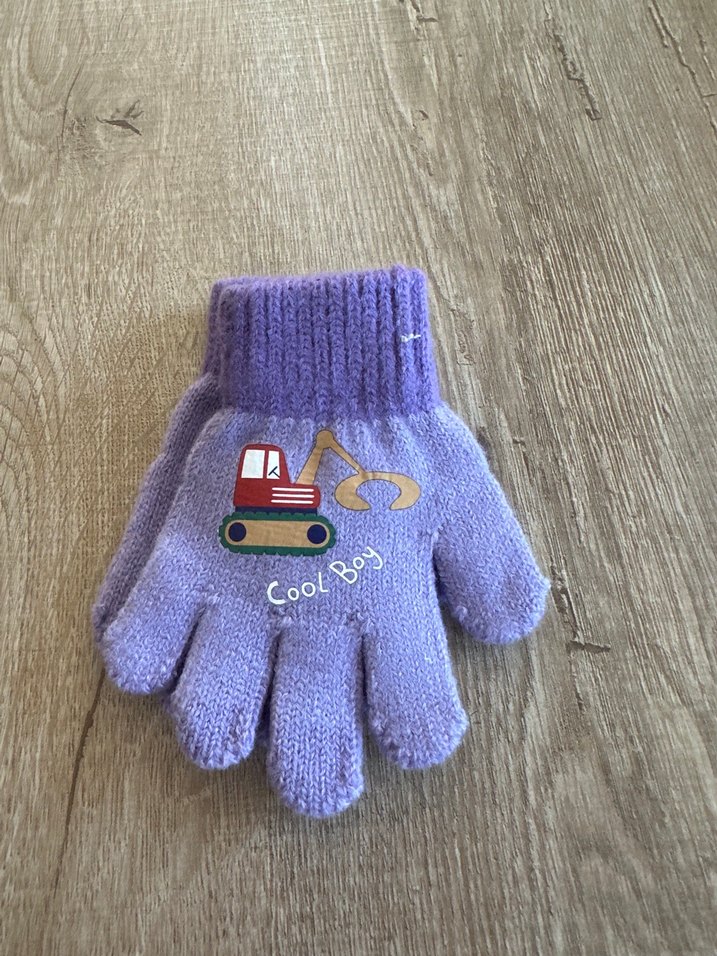 Mor renkli, yumuşak dokulu çocuk eldiveni, sokak modasına uygun. Kepçe desenli iş makineli eldiven yurt dışı dan alındı