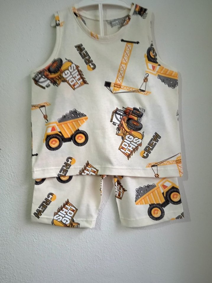 Yumuşak pamuklu kumaş,iş Makinesi desenli kolsuz erkek çocuk takım. Bisiklet yaka. Özel dikimdir.