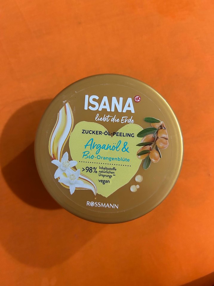 ISANA argan yağı ve organik portakal çiçeği içeren, %98’den fazla doğal içerikli vegan vücut peelingi. Cildi nazikçe soyup besler. Bi kere kullanıldı