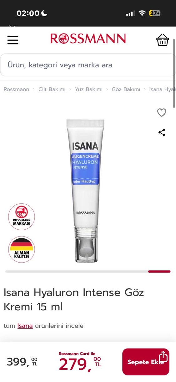 Isana Hyaluron Intense Göz Kremi 15 ml