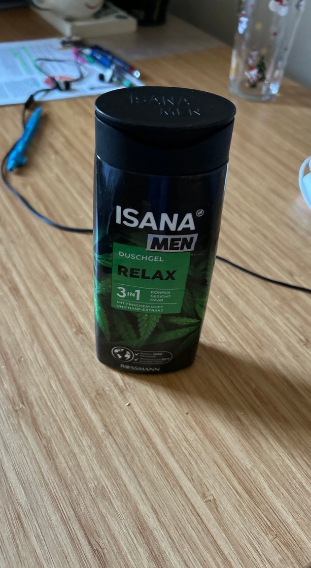 Isana Men Relax 3'ü 1 arada duş jeli, nane ve kenevir özleriyle vücut, yüz ve saç için temizleyici, ferahlatıcı ve rahatlatıcı etkiler sağlar.