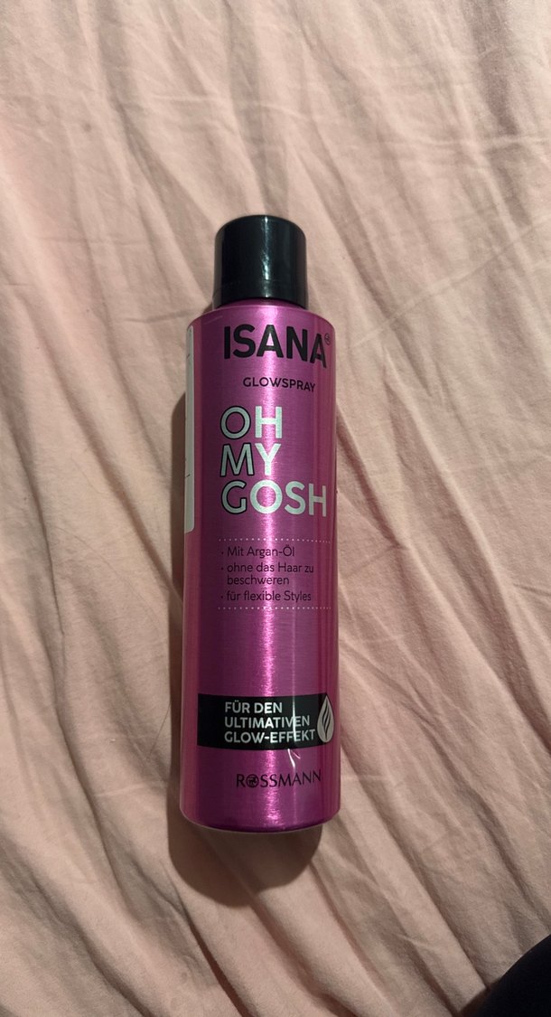 ISANA Oh My Gosh Glow Sprey, argan yağı içerir ve saçı ağırlaştırmadan güçlü bir parlaklık etkisi sağlar, esnek stiller için uygundur.