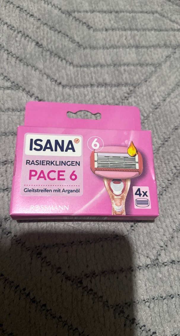 ISANA PACE 6 tıraş bıçakları, argan yağlı kayganlaştırıcı şeritlere sahip, 4 adet yedek bıçak içerir.