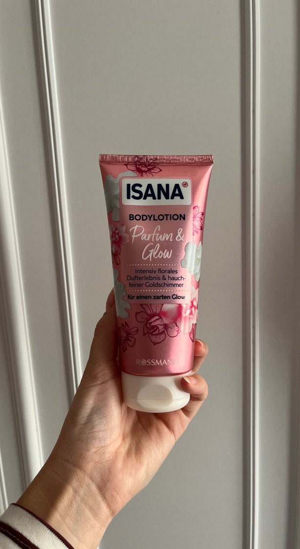 Isana vücut losyonu, çiçeksi koku ve hafif altın ışıltısı ile cilde nazik bir parlaklık verir. Cildi nemlendirir ve hoş bir koku bırakır.