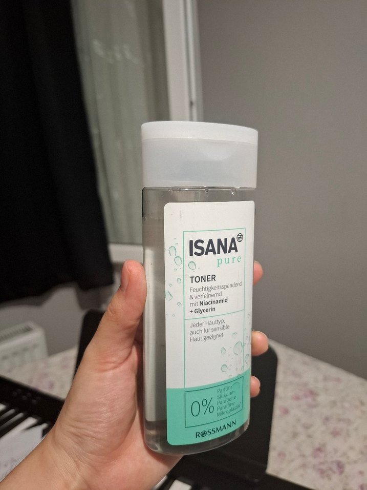 ISANA Pure toner, niasinamid ve gliserin içeriği ile cildi nemlendirir ve tazeler. Hassas ciltler dahil tüm cilt tipleri için uygundur. 1-2kez kullandim