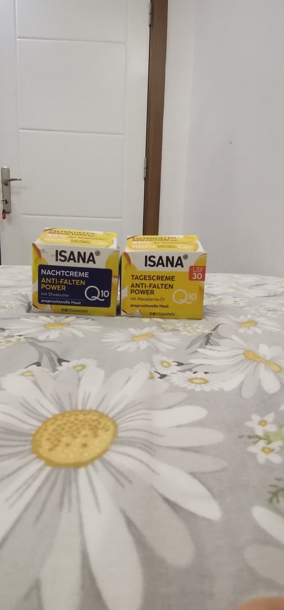 ISANA Q10 kırışıklık karşıtı gece ve gündüz kremleri, koenzim Q10 ile cilt bakımı sunar. Gündüz kremi SPF 30 ve makadamya yağı içerir. Sıfır ürün ikiside. Sadece gece kreminin kapağında biraz hasar var. İkili fiyattır.