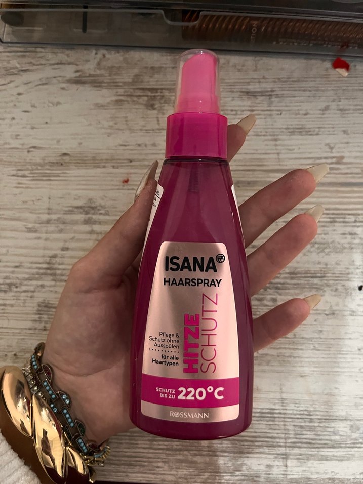 Isana saç spreyi, 220°C'ye kadar ısı koruması sağlar ve tüm saç tipleri için uygundur. Saçı korur ve bakım yapar. Hiç kullanılmadı