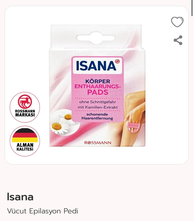 Isana vücut epilasyon pedi… Alman malıdır… Seyahatlerinizde yanınızda kolayca taşıyabilirsiniz… Vücudunuzu nazikçe zımparalayarak hem tüyleri törpüleyerek görünmez hale getirir. Hem de peeling etkisi yaparak ölü derilerinizden kurtulmanızı sağlar…