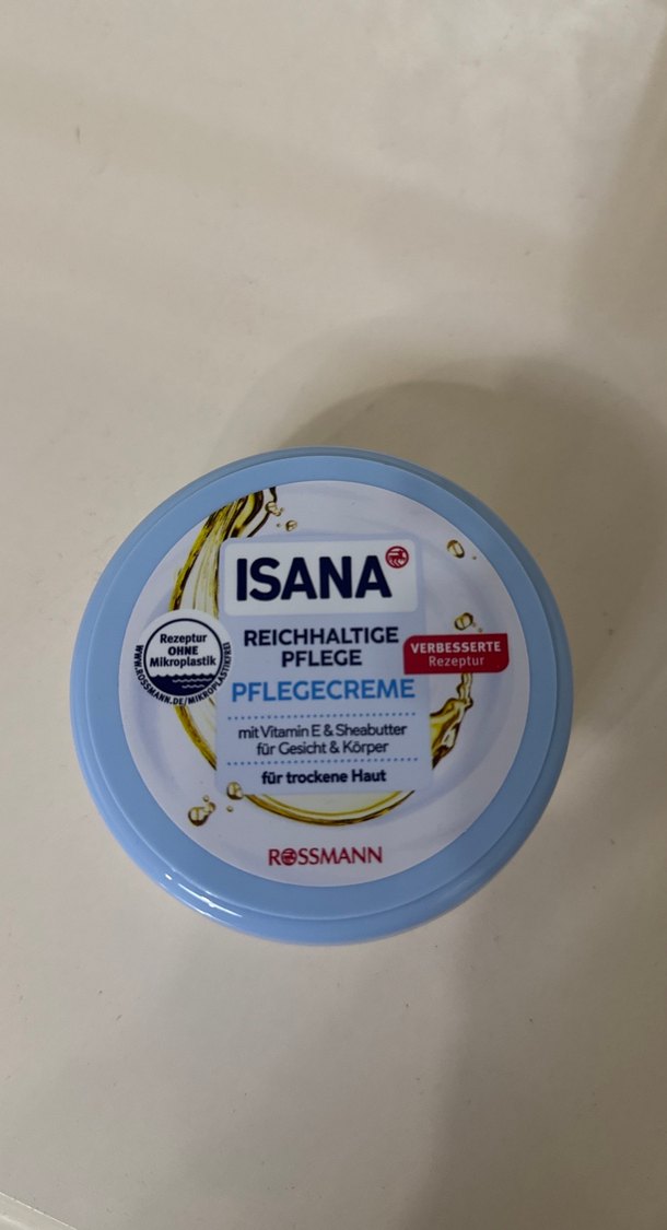 Isana zengin bakım kremi, E vitamini ve shea yağı ile kuru ciltler için yüz ve vücutta yoğun nem sağlar. Geliştirilmiş formül ile daha iyi bakım sunar. Yurt dışından alınmıştır orjinaldir