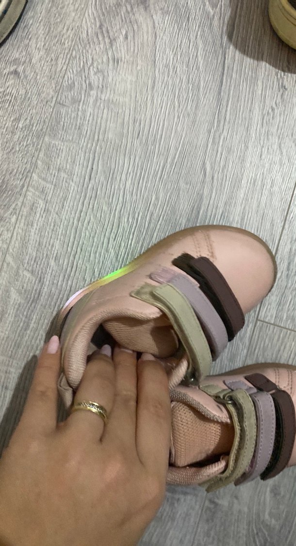 Bej renkli spor ayakkabısı, dolgu topuk ve cırt cırtlı bantlara sahip. Kauçuk tabanlı, rahat günlük kullanım için uygundur. Pastel tonlarda, trend sokak stili için ideal. ışıkları yanıyor