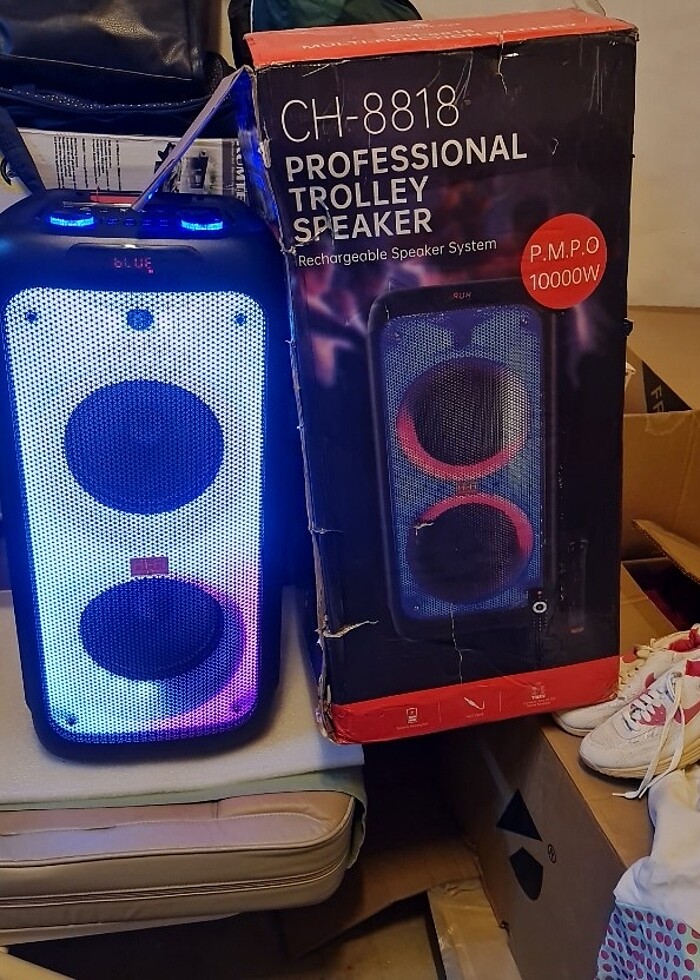 Fm radyo usb çıkışlı sd card ses kalitesi muhteşem partiler için uygun şarjlı arkasında minik çatlak var başka kusuru yok mikrofonlu kusurunu son resimlere ekledim inceleyip alınız iade yoktur