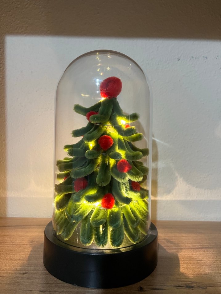 Işıklı Cam Fanus İçinde Renkli Mini Çam Ağacı