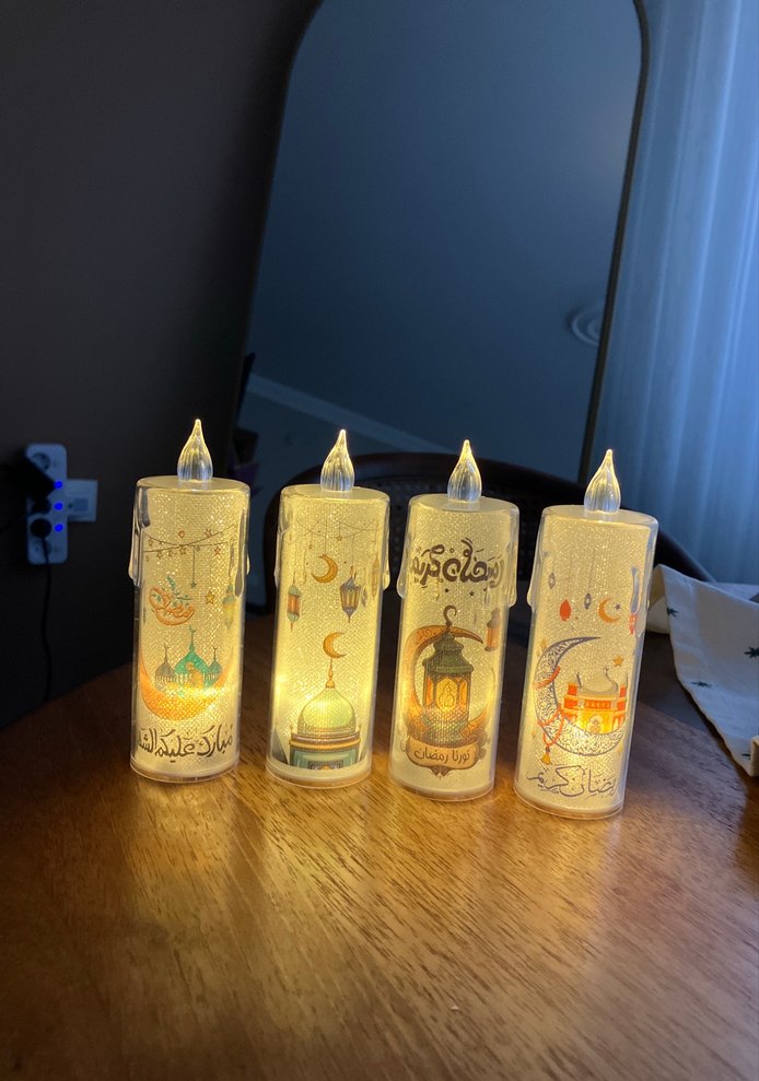 Üzerinde renkli İslami temalar bulunan, üstü alev şeklinde LED ışıklı. Sıcak ve şık bir atmosfer yaratır. ️LR1130 piliyle çalışır içinde pilli gönderilecek . 1 Adet fiyatıdır hangisini istediğinizi belirtin belirtmezseniz rastgele biri gönderilir.