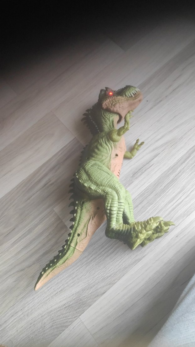 dinozor sesi çıkarıyor gözleri yanıyor ve kuyruğu çıkıyor.
