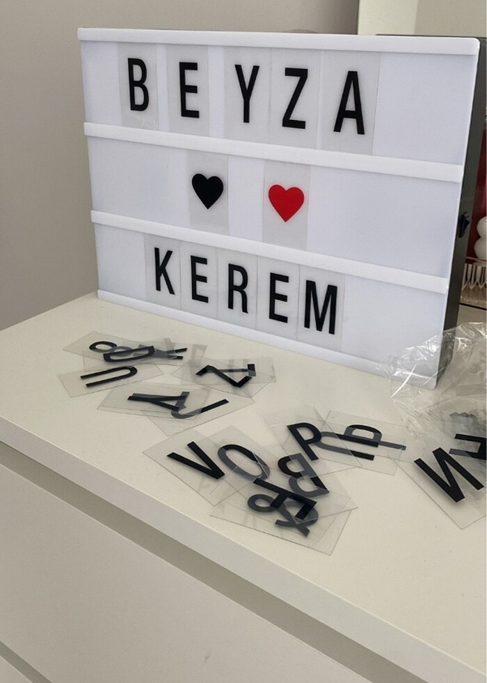 Kablosuz pilli harf pano, hiç bir harfte eksiklik yoktur( sayı ve sembolde mevcut). Hiç bir sorunu yoktur. Harflerin jelatinleri üzerinde hala.