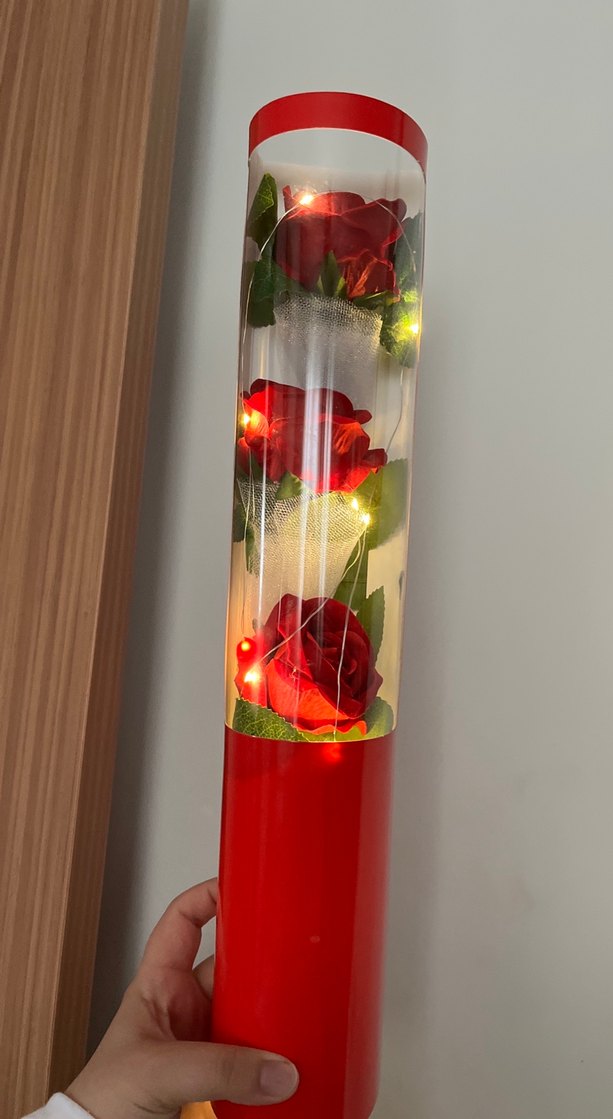 Işıklı Kırmızı Gül Vazo