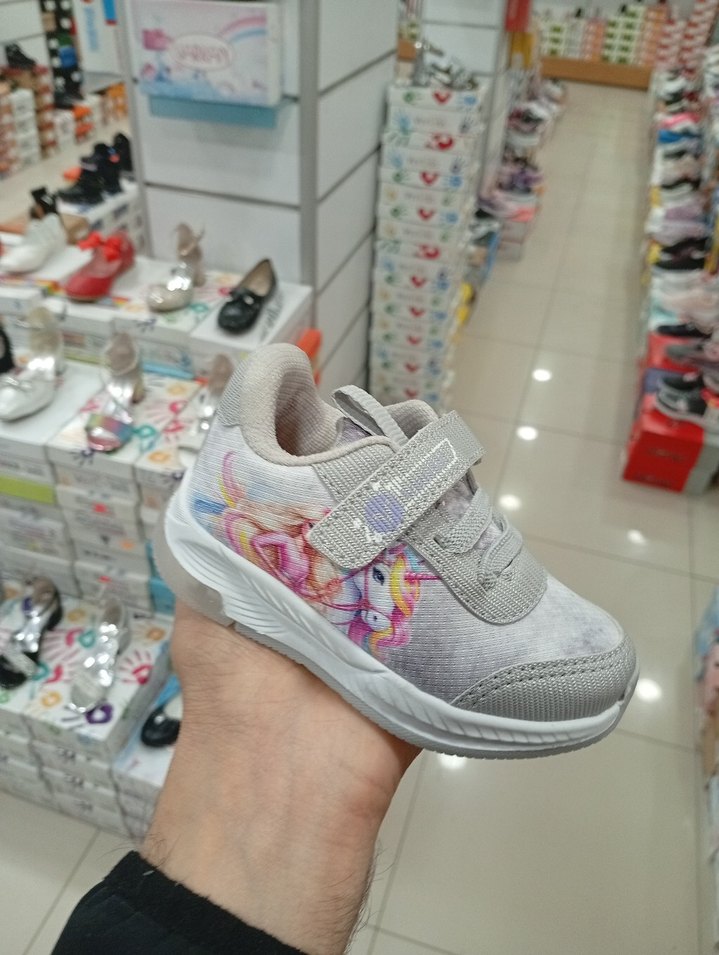 Kız çocukları için çok renkli bağcıksız, cırt cırtlı, kauçuk tabanlı spor ayakkabı. Sokak modasına uygun rahat tasarım.