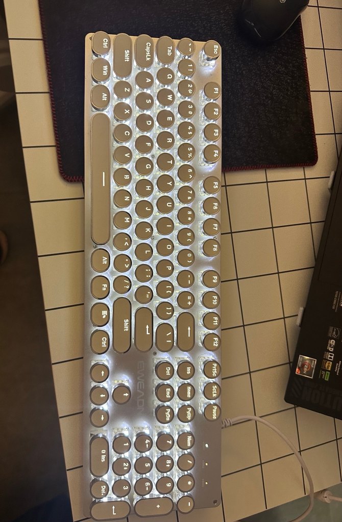 Beyaz renkte, retro yuvarlak tuşlara sahip kablolu ve ışıklı klavye. Klavye Temudan alınmıştır vergisi ile birlikte 1690Tl’ye alınmıştır. Kullanım durumu sıfıra yakındır. Mekanik klavye istemediğime karar verdiğimden satışa koyulmuştur.