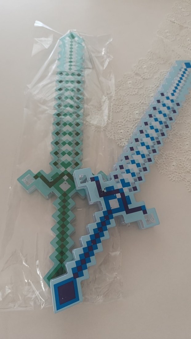 ışıklı sesli Boncuklu, yılan desenli renkli turkuaz ve mavi kılıç, çocuk aksesuarı olarak uygun. ️