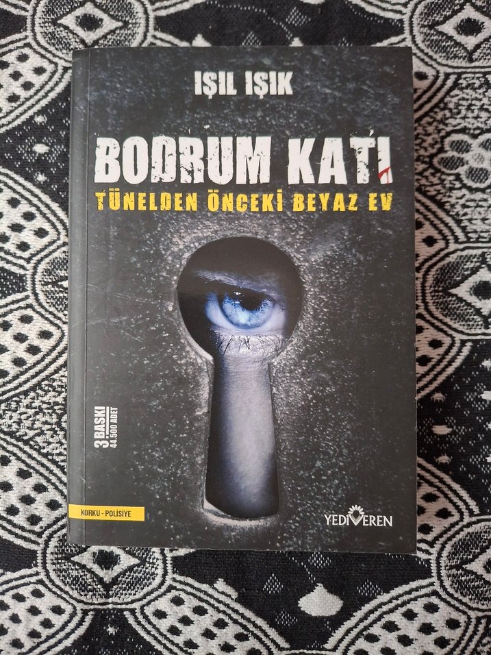 Işıl Işık'ın polisiye türündeki kitabı 'Bodrum Katı: Tünelden Önceki Beyaz Ev', kapağında anahtar deliğinden görünen mavi bir gözü içeriyor.
