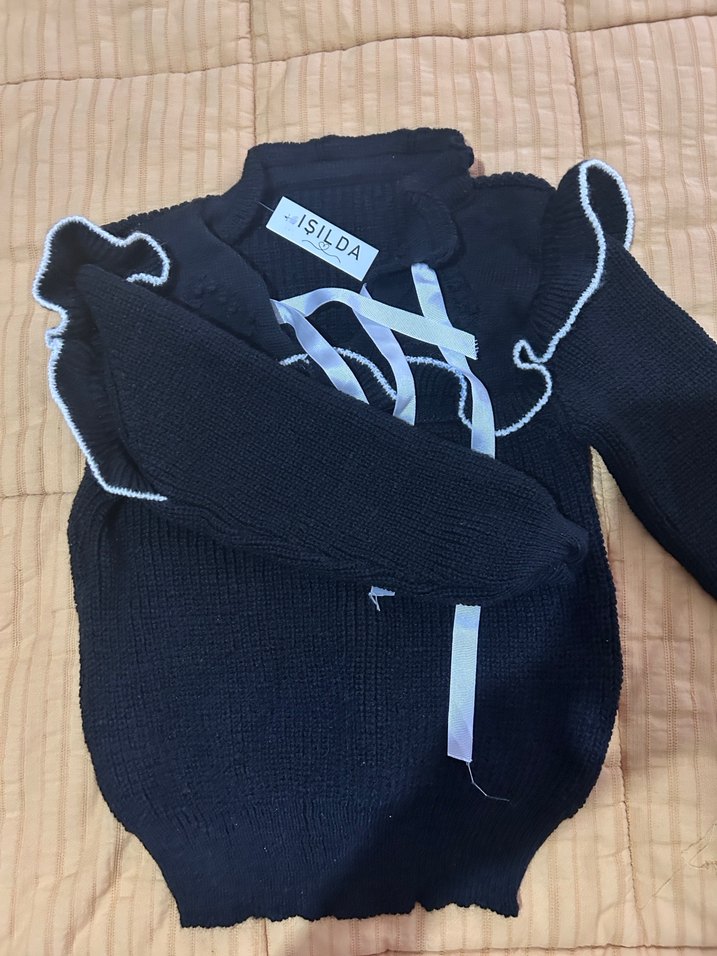 ISILDA markalı, uzun kollu, halter yakalı siyah triko, rahat ve şık günlük kullanım için uygun