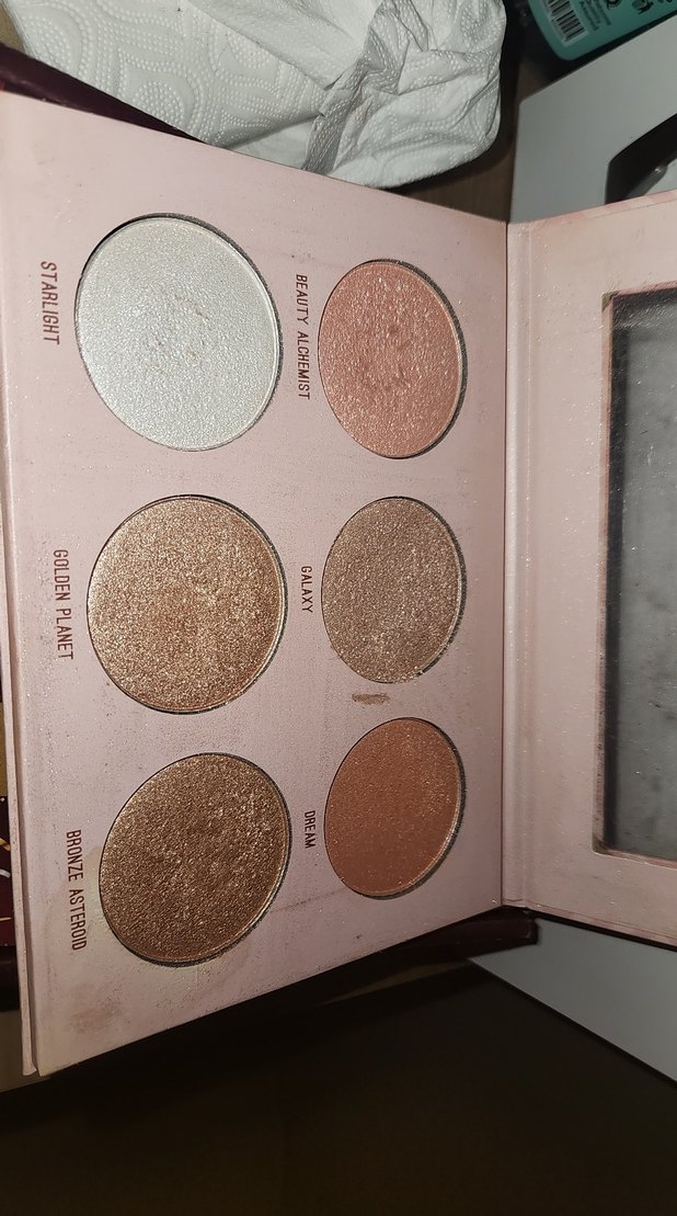 Altı farklı ton içeren bej aydınlatıcı palet, Golden Planet, Starlight ve Bronze Asteroid gibi ışıltılı renkler sunar. ✨