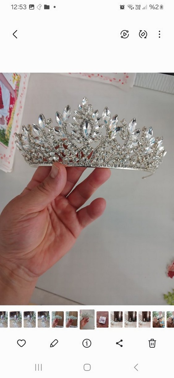 Beyaz gelin tacı, ışıltılı payet detayları ve klasik tasarımı ile gösterişli bir şıklık sunar. ✨