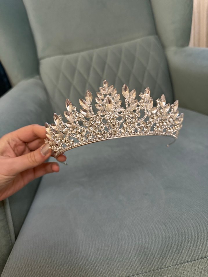 Beyaz, kristal taş işlemeli gelin tacı, klasik ve zarif tasarıma sahip. Özel günlerde ışıltılı bir görünüm sunar.