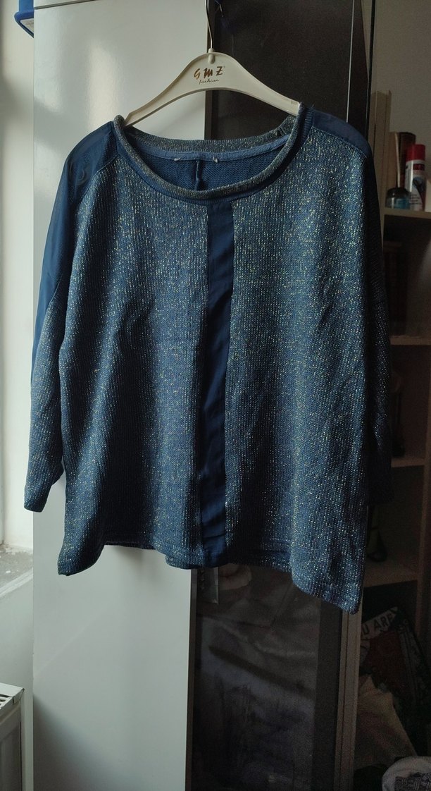 fakir kol kol ve orta şerit kısmı transparan içinde Gold ışıltılar bulunan mavi bluz kazak m beden