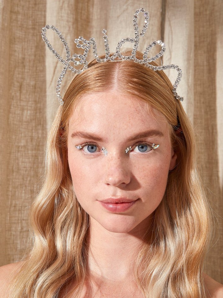 Işıltılı camdan yapılmış "Bride" yazılı saç aksesuarı, bohem ve retro tarzlar için uygundur. ✨